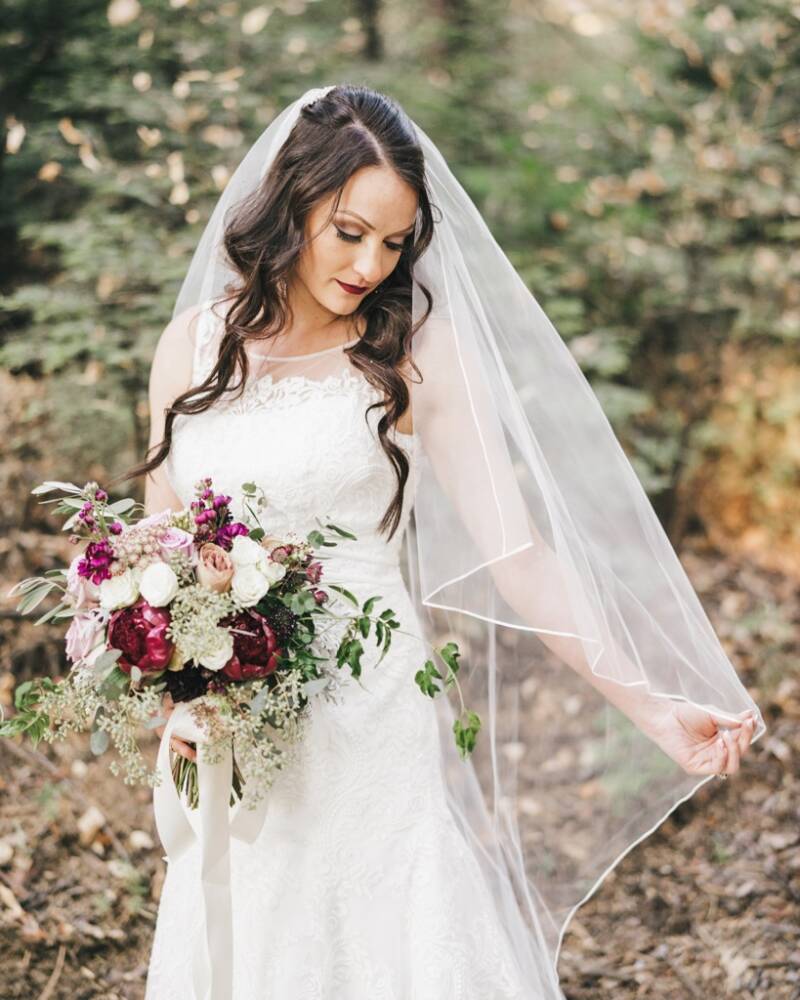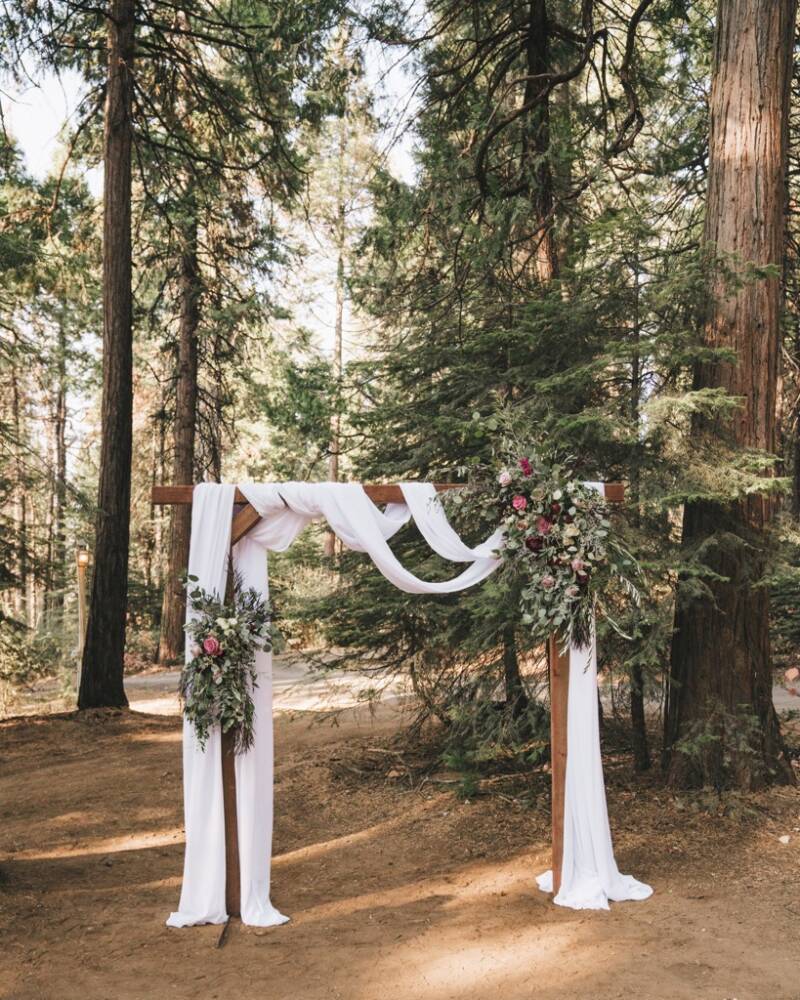 The rich color palette and floral textures stood out beautifully against the rustic wood setting, creating the romantic atmosphere we had spent months dreaming about.